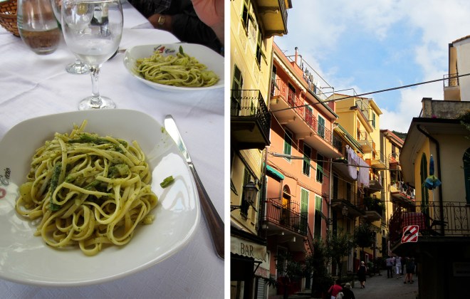 While I can write prose about the Cinque Terre all day, some of the most delightful treats were the region’s culinary highlights including mouth-watering pesto pasta (which we ate at Ristorante Cecio in Corgnilia), fresh seafood, extra large sweet lemons used to make a delicious limoncino liquor and a local variety of white wine (contrary to the traditional Tuscan red). Even though the same grape and process is used to make the Cinque Terre wine, its taste varies from town to town due to variations in the soil – try a wine flight at a bar and see for yourself! There’s also a little gelateria named Il Porticciolo right along the water in Vernazza that is pretty amazing too.