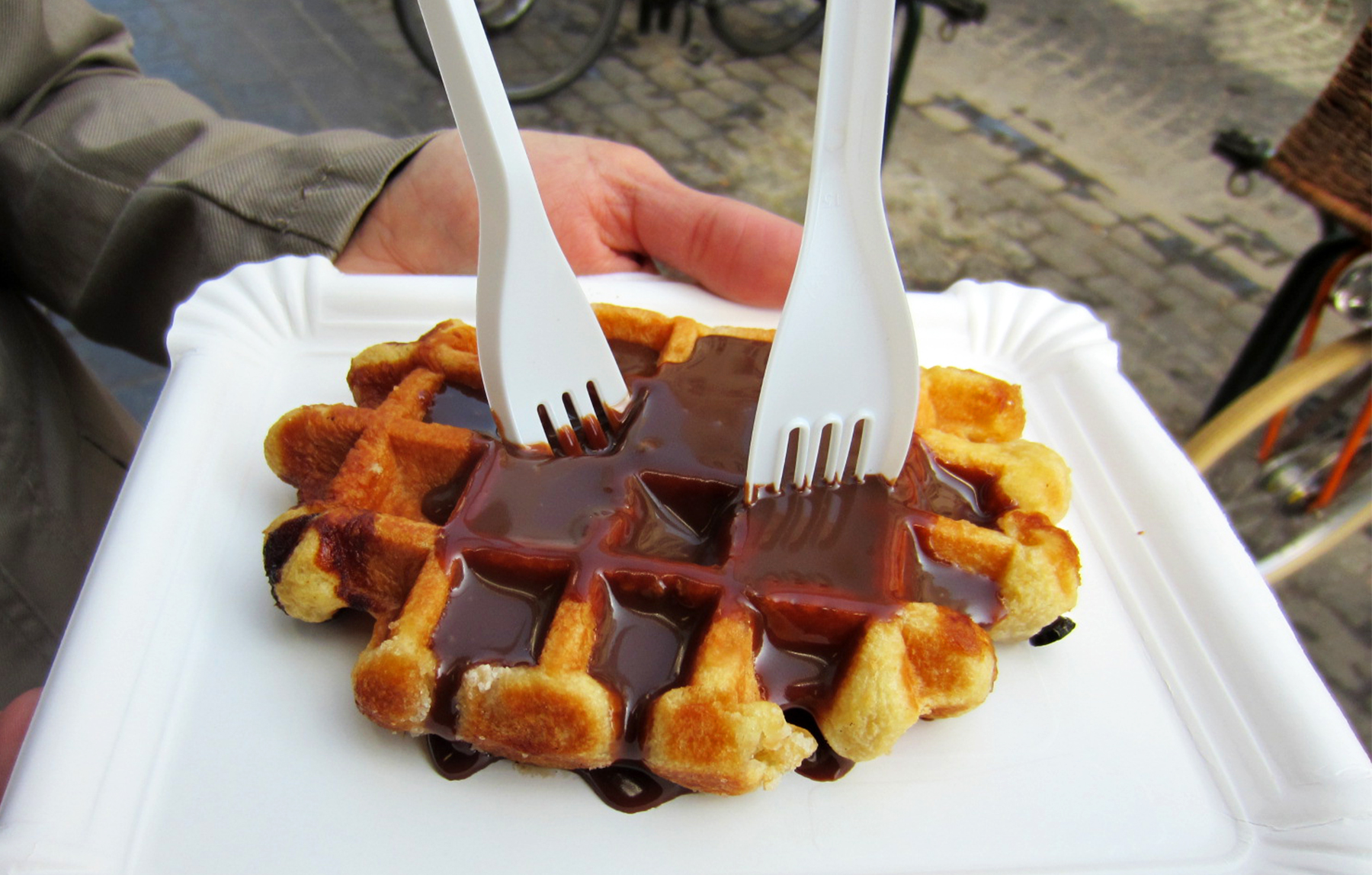 Even if you don’t typically indulge in fried foods, you have to try frites. These fries are deep-fried twice – once to cook the potato and once to brown – so the result is fluffy on the inside, yet crispy on the outside. Whatever you do, don’t order ketchup (you’ll mark yourself as a tourist instantly – I had to elbow my husband on this one), but rather try one of the more traditional mayonnaise-based sauces. The best place to enjoy this snack is from the little green stands in front of the bell tower on Market Square.