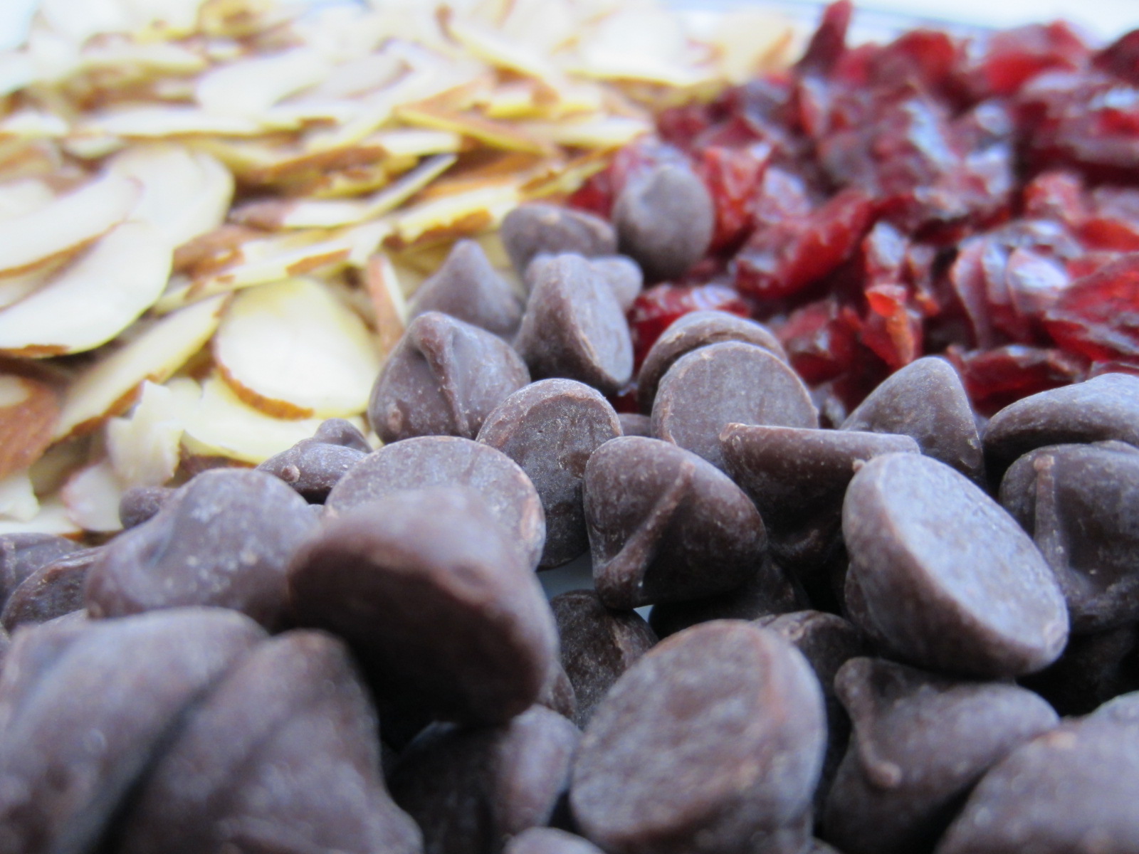 I usually make them with chocolate chips, slivered almonds and dried cranberries, but you can use the recipe as a base and experiment with any type of nut, fruit or other ingredient.