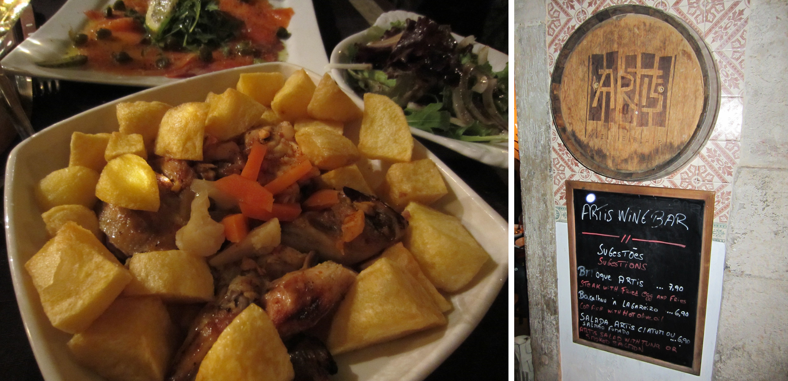 Frango assado (roasted chicken) and other petiscos at Artis Bar