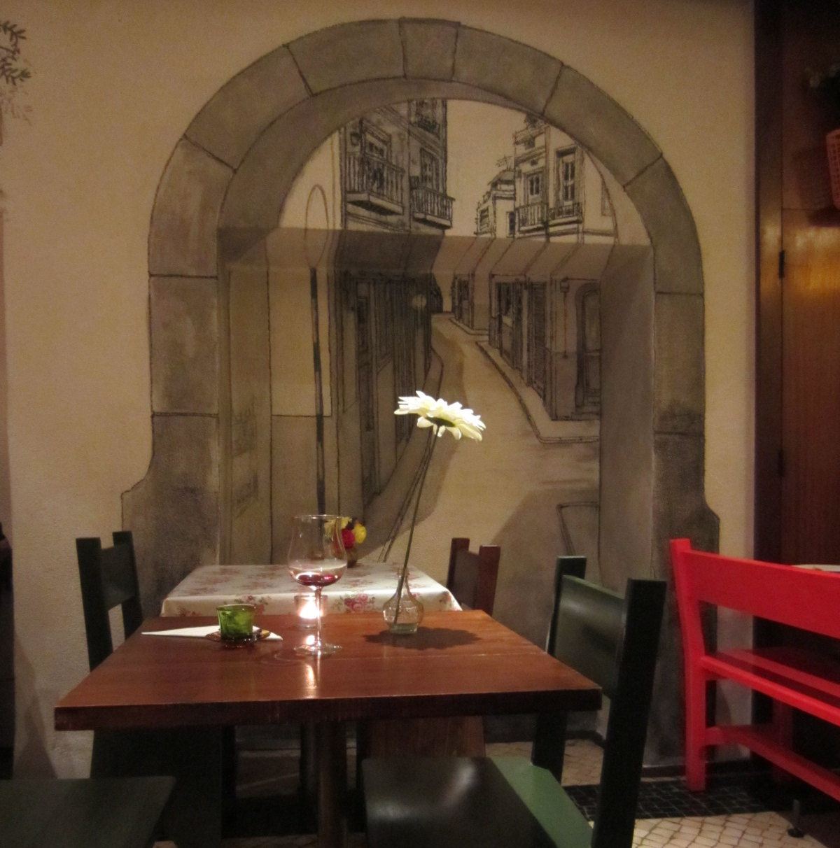 When you step inside Patio do Bairro, you’ll feel as if you’ve been transported outside, sitting on a Portuguese pátio.  This adorable restaurant oozes with charm, with murals adorning the walls that bring to life the intimate atmosphere of Lisbon’s old neighborhoods.  The menu is broad, offering a range of traditional fish and meat dishes.  You’ll eat and drink well at Patio, and feel as if you’re at “home”.