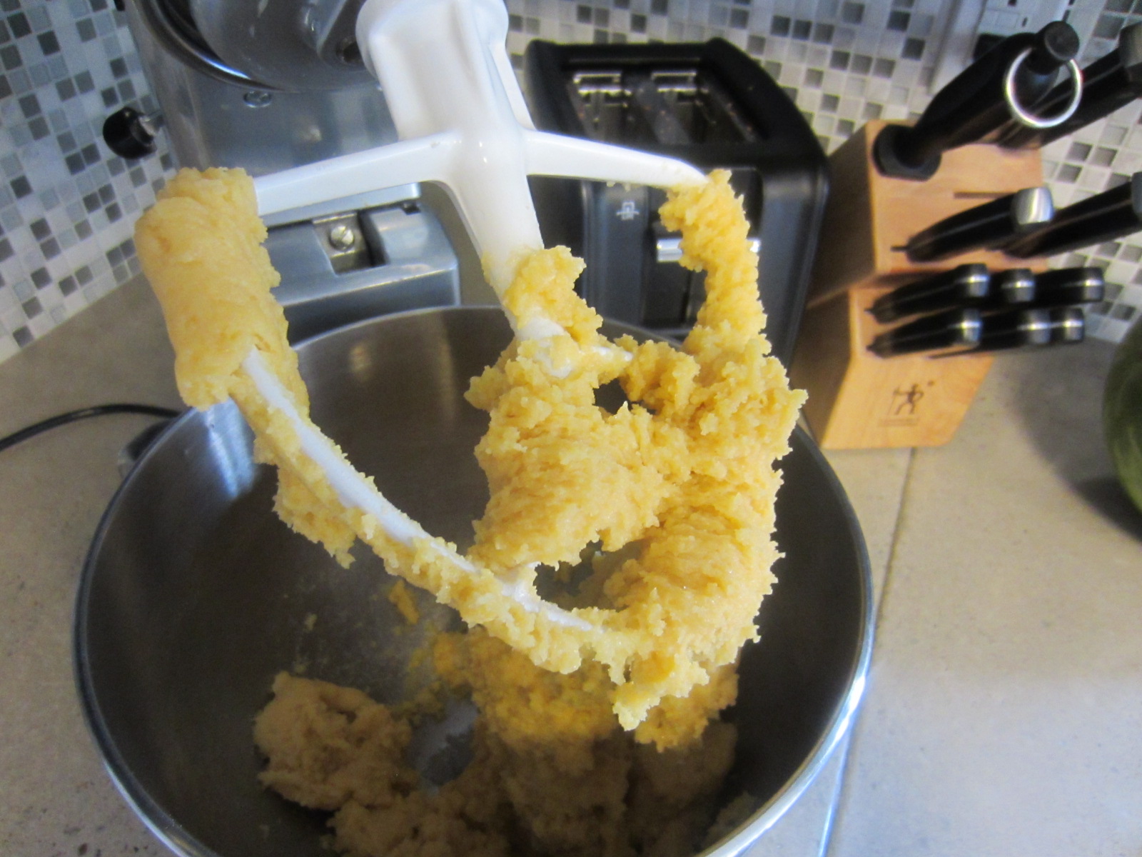 - Continue to mix, adding remaining flour 1/4 cup at a time, until the dough comes together and can be molded by hand. (Note: You may not need the full 3/4 cup of flour.)