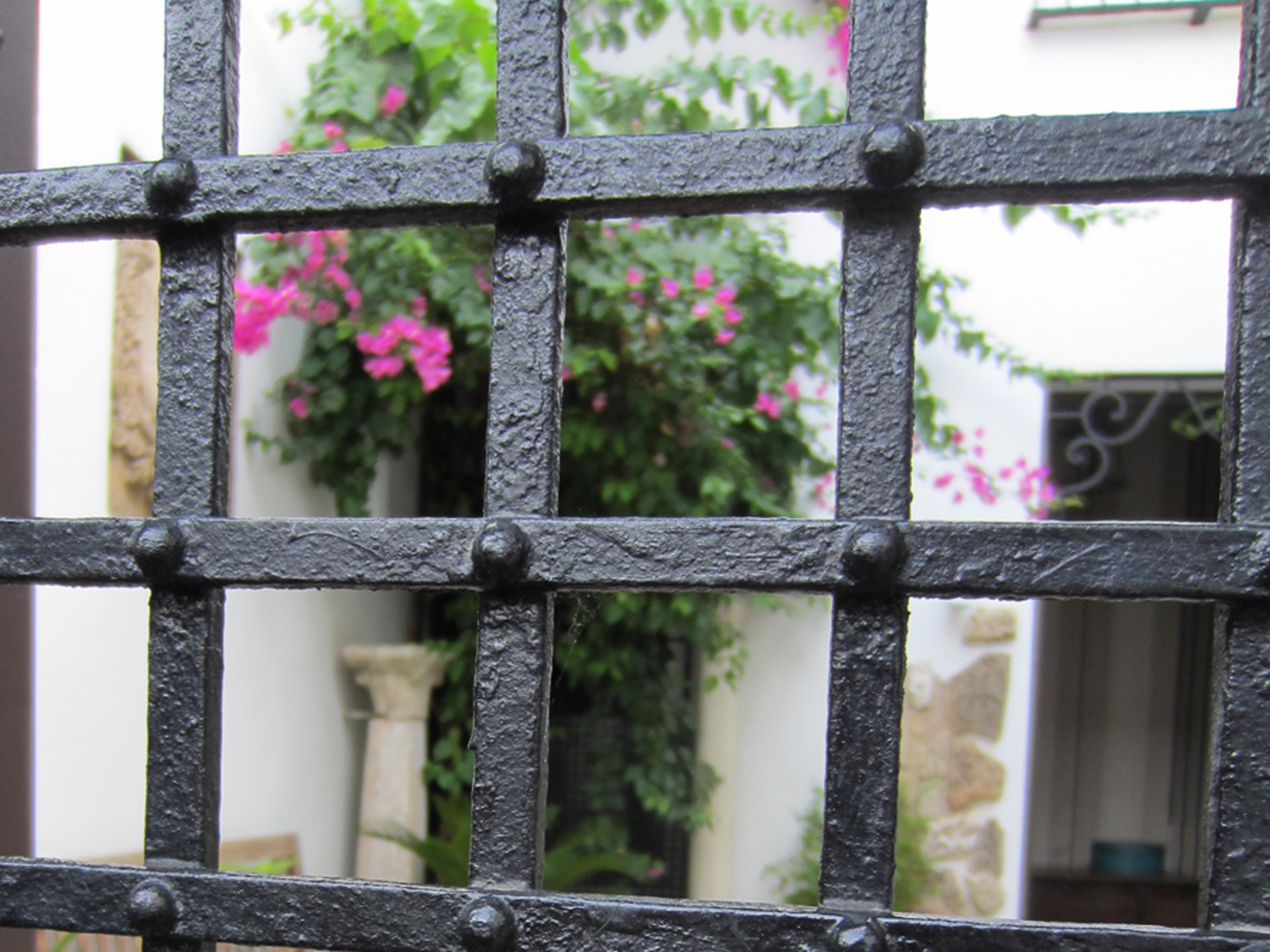 Even though we weren’t there in the spring or during the holidays it was still a treat to walk up one of Córdoba’s most famous streets Calleja de las Flores, lined with bright blue hanging buckets filled with red geraniums. It was here our search for patios began, peeking through iron gates from the streets in search of hidden treasures.