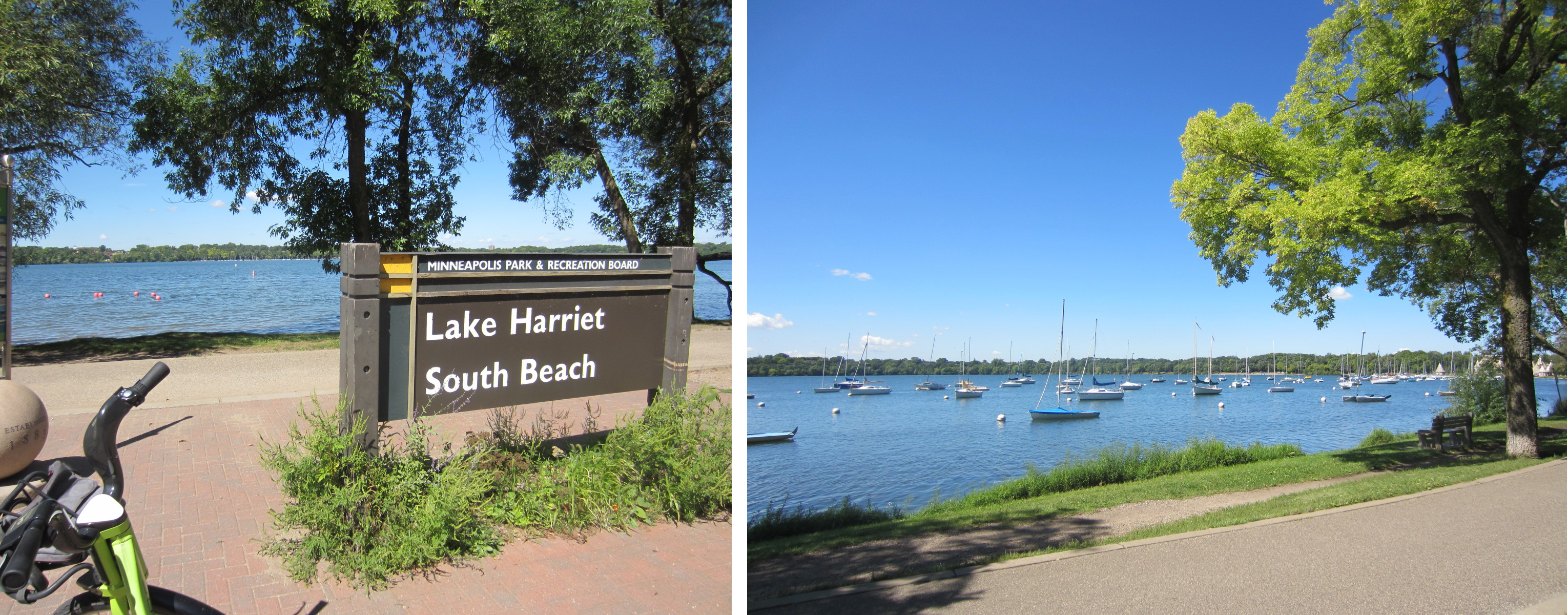 Continuing along the Minnehaha Parkway, the next lake we reached was Lake Harriet, which offered us picture-perfect views of its sailboat-dotted shores.