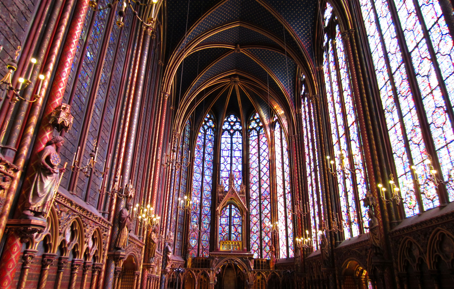 If your time allows, also consider visiting Sainte-Chapelle before leaving the Île de la Cité. The first time we tried to find it we literally walked around in circles a good 20 minutes before stumbling upon the entrance (in our defense, there was restoration work going on and the walls were covered so signage was not visible). Truly a hidden treasure, the 13th century Gothic chapel’s non-descript monochromatic exterior is offset by its glistening vibrant interior of stained glass – a “jewel box” fit for a king’s relics.