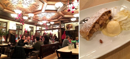 Many of Augustiner’s beers are still served out of wood barrels and the menu has a good selection of traditional dishes and sides, including several daily specials. Our waitress was not very attentive, but for our last meal in Munich the warm, cozy environment and hearty food definitely hit the spot. I especially loved the house made potato salad, and who could pass up apple strudel for dessert?