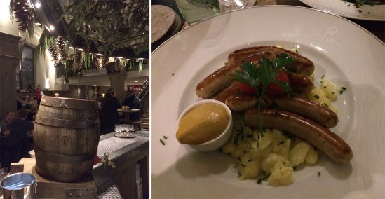 The night we walked into Der Pschorr, the hall was beautifully decorated for Christmas and packed with people. Reservations are strongly encouraged, as we were initially turned away and lingered to formulate a plan before stepping back into the cold, which was just long enough for the man seating tables to flag us down and direct us to an empty table near the bar. Talk about being in the right place at the right time, we had a front row seat to watch the bartender tap keg after keg of the house specialty Hacker-Pschorr Edelhell beer, a premium lager from oak wooden barrels that’s chilled on blocks of ice in the cellar before being brought up to the bar. You should order at least one of these if you go to Der Pschorr. I also recommend the Bavarian wine list, as well as a post-meal schnapps if you are feeling brave.