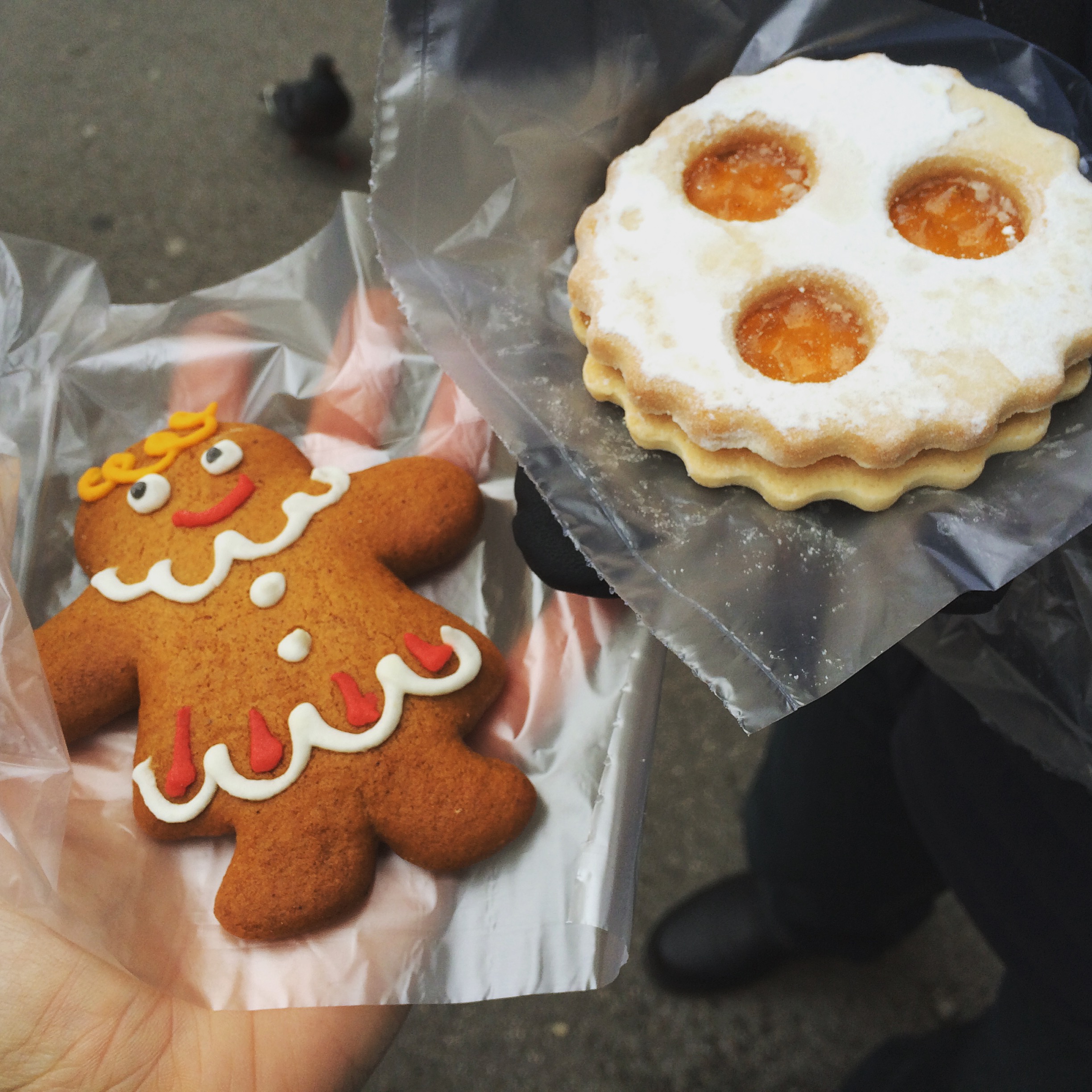 Just as we were starting to think about finding a place to stop for a quick lunch, we were lucky enough to stumble upon an amazing little market at Universitätsplatz. The Grünmarkt as it’s called (which means “green market”), is a traditional farmers market that dates back to the 18th century and operates in this square daily except for Sundays. With stalls selling everything from fresh flowers to produce, meats, cheeses, bread and more, we grazed enough to constitute a small lunch, which included a gigantic soft pretzel and fresh-baked gingerbread and Linzer cookies for dessert. I made it a point to hunt down a recipe for traditional Linzer cookies when I got home (coming soon!).