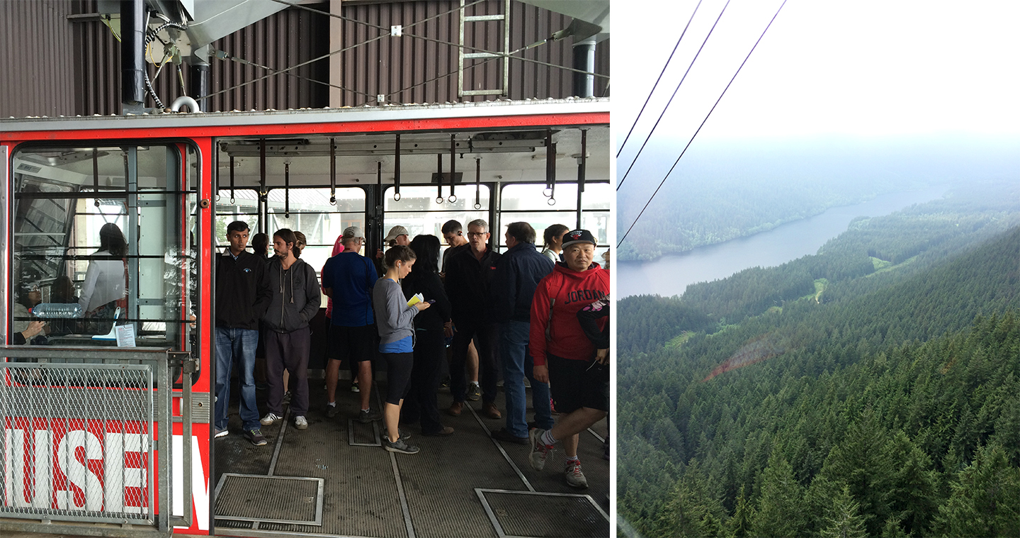 Victory! We reached the top in about 1 hour and 20 minutes with a handful of short breaks to take photos. Our clothes were a little wet but dried rather quickly inside the chalet, where you’ll find restrooms, a coffee bar and a restaurant to refuel. Looking back, the trail was a good length, but I enjoyed the challenge and payoff so much that I almost wish it was longer. Unfortunately, the Grouse Grind is too steep to hike down, so you have to buy a ticket for the Skyride aerial tram, which will breezily take you to the bottom of the mountain in a mere 8 minutes. Hiking the Grouse Grind was an amazing and worthwhile experience that I would definitely tackle again.