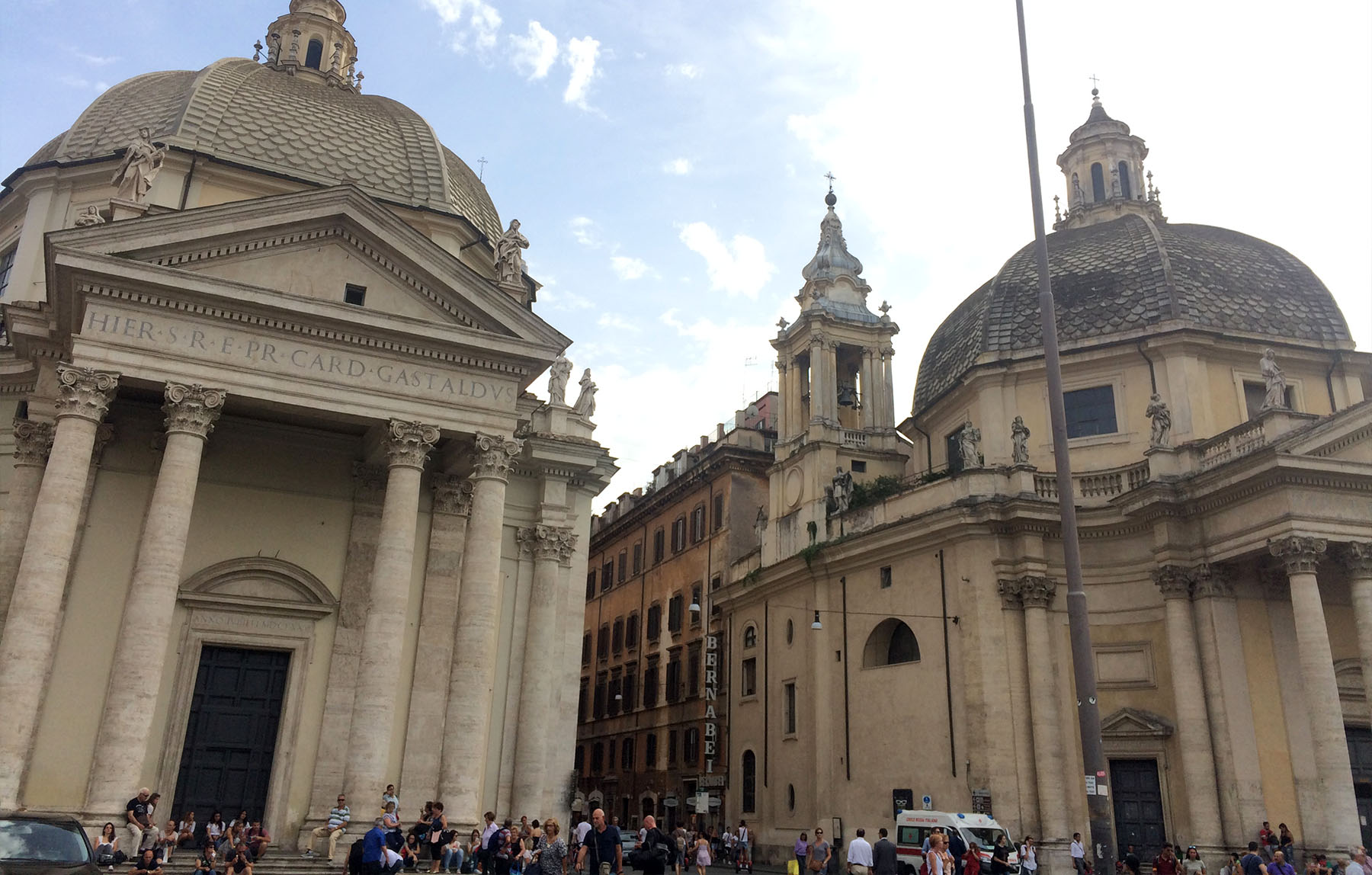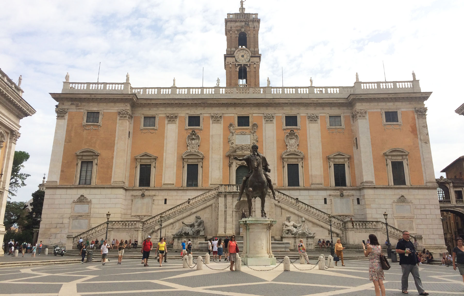 Next we turned left and climbed up the road behind the Forum to reach the Campidoglio. Designed by Michelangelo, this hilltop piazza caps one of Rome’s 7 hills – Capitoline Hill – and is distinguished by its perfect symmetry and monumental statuary. It was originally intended that visitors approach the square from the giant staircase, which leads towards the statue of Marcus Aurelius at its center. After descending the stairs we crossed the traffic-filled roundabout of Piazza Venezia, which sits at the foot of the grandiose Victor Emmanuel II Monument. This temple-like structure pays homage to the first king of a unified Italy, and also holds the Tomb of the Unknown Soldier, with its eternal flame and round-the-clock guard.