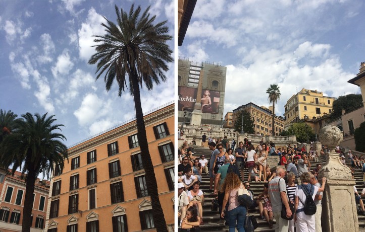 Next we made our way to Via del Corso, Rome’s version of 5th Avenue since the mid-19th century. This grand shopping boulevard is perfect for an evening passeggiata when it’s closed off to traffic. Via del Corso is remarkable in the sense that it forms a completely straight access, connecting Piazza Venezia in the south with Piazza del Popolo in the north. When we reached the latter, we took some time to rest our feet while taking in the sights on this square, including the 2 almost identical churches – Santa Maria dei Miracoli and Santa Maria in Montesanto – that frame Via del Coroso. Continuing down Via del Babuino (the street on the left if you’re facing the churches), we headed towards our last stop before heading back to the B&B for a nap and to freshen up before dinner, Piazza di Spagna. The impressive stairs that share the same name (thanks to the nearby Spanish Embassy to the Vatican that has been located here for centuries) are a popular spot for people to gather both day and night.