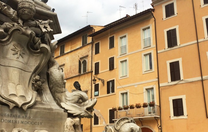 Continuing through Rome’s bustling streets, our next stop was Campo de’ Fiore, a square that plays hosts to a market by day and al fresco bars and restaurants by night. Its name meaning “field of flowers” dates back to the Middle Ages when it was just that. While many of its vendors have gone over to the tourist dark side, it’s still a fun spot to browse, or perhaps pick up some fresh fruit for a snack or spices to take home. If you do buy any produce, at the southeast end there is a nasone water fountain where you can wash your spoils before eating them.