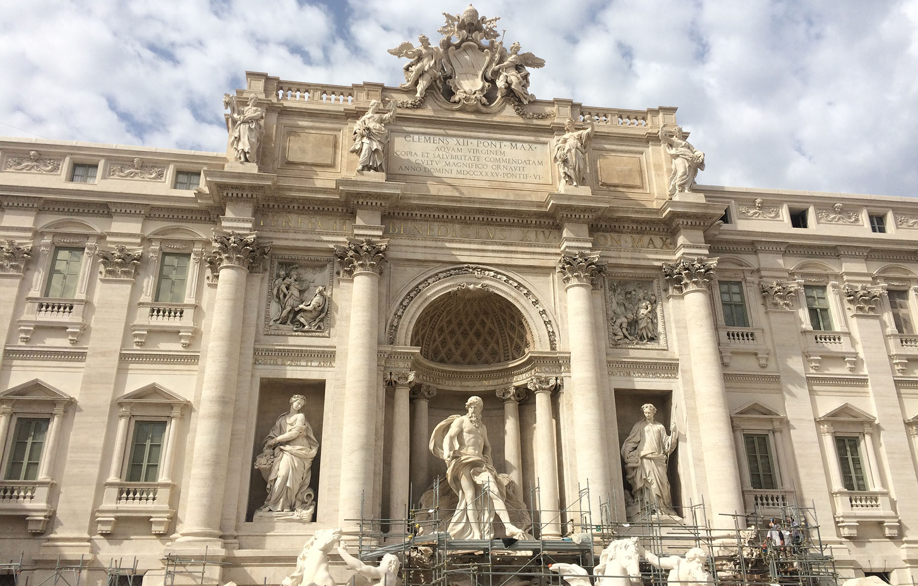 Another one of my favorite fountains in Rome is the one in Piazza della Rotunda in front of the Pantheon. It’s a great spot for a photo op before slipping into the well-preserved, dome-capped temple that was once dedicated to the worship of all gods (admission is free, a plus). You’ll notice visitors stepping to the center and looking up for a glimpse of the view through the Pantheon’s giant oculus. As we continued to make our way through Rome’s Centro Storico we also paid a visit to the Trevi Fountain to check in on the status of its restoration work. Last December, we were able to cross a temporary bridge over the fountain for an up-close look at the statues. It looks as if the project to restore the fountain to its original brilliance is nearly complete, and is scheduled to fully reopen later this fall. Even throughout restoration, a temporary pool has been set up to throw in a coin to ensure a visit back to Rome.
