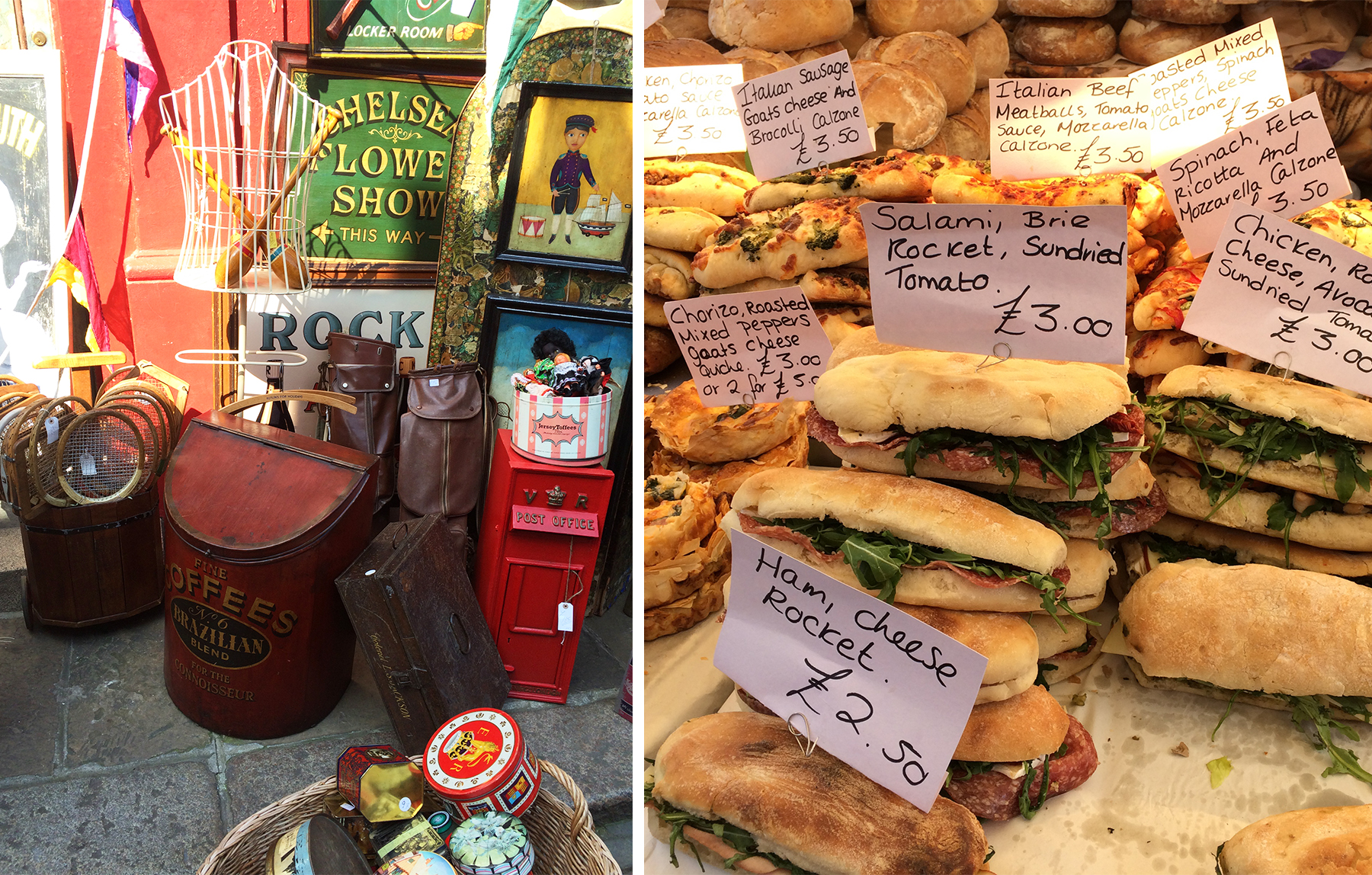 Heading north, our next stop was the Portobello Road Market in Notting Hill. This self-proclaimed “world’s largest antique market” is open every day of the week and we were lucky to be there on Saturday, which is the market’s largest day. Occupying the entire street, pastel buildings provide a colorful backdrop to stalls of eclectic items ranging from silver serving ware to Scottish tartans, jewelry, household items, furniture, fresh produce and food vendors galore. The Portobello Road Market was definitely fun to browse (if only we could take that antique mirror back with on the plane with us) but also a great place to assemble a grab bag lunch – a large container of raspberries for 1 pound, baguette sandwiches and a couple of sweet tarts for snacking later in the day. A shoppers and foodies delight, plus there were also a handful of street performers that added to the market’s all-around fun vibe.