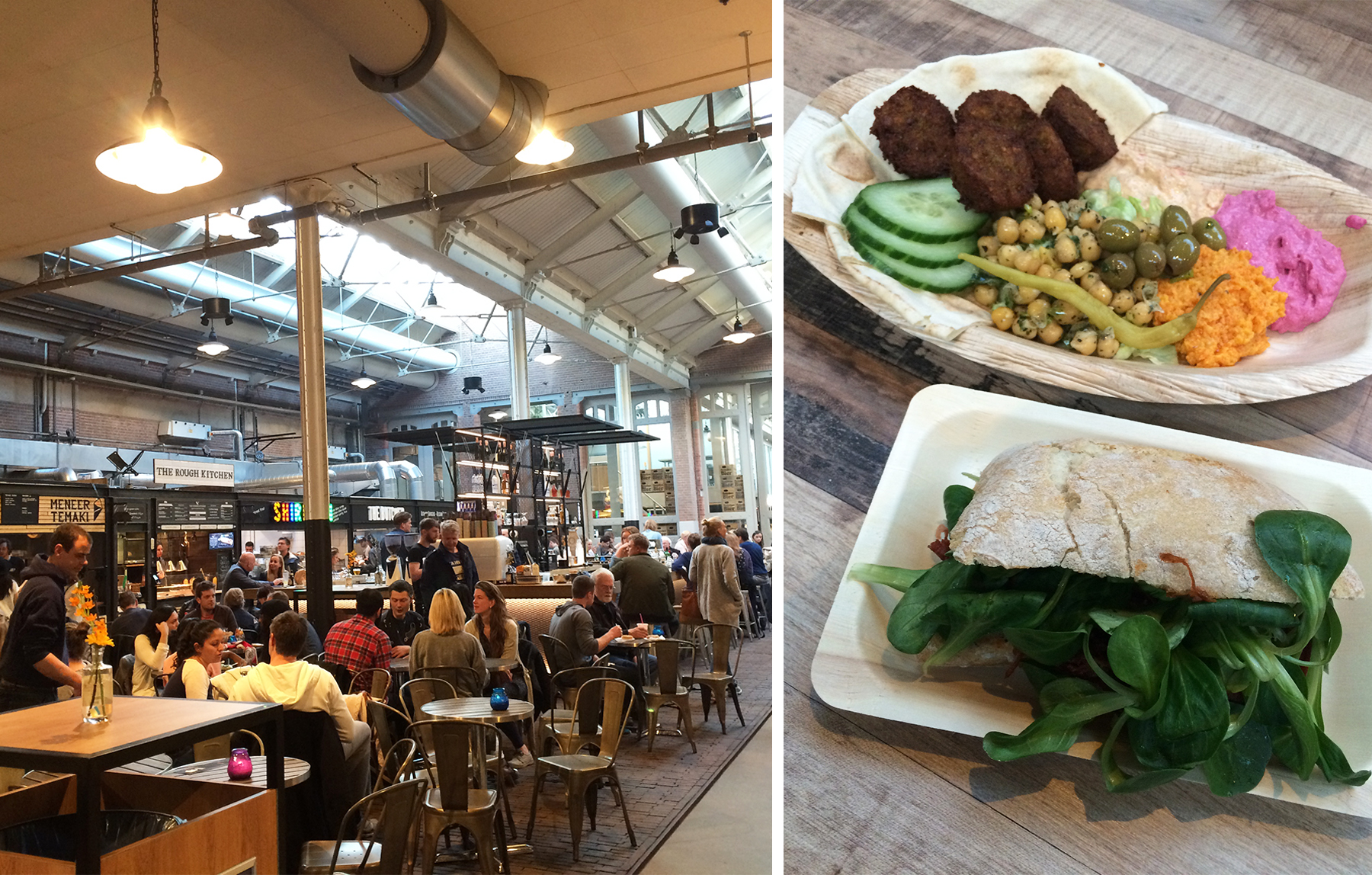 Inside the industrial building you’ll find about 20 eclectic eateries wrapped around the perimeter with tables in the middle.  There’s also a handful of bars serving up beverages ranging from beer to spirits (definitely check out the central Gin & Tonic bar with its goblets of beautifully concocted cocktails).  After several laps around we decided on a falafel platter from Maza and a pulled pork sandwich from The Rough Kitchen.  The food was awesome, as was the cool, urban vibe at Foodhallen, which makes it a great place for people of all ages to gather for a quick bite.