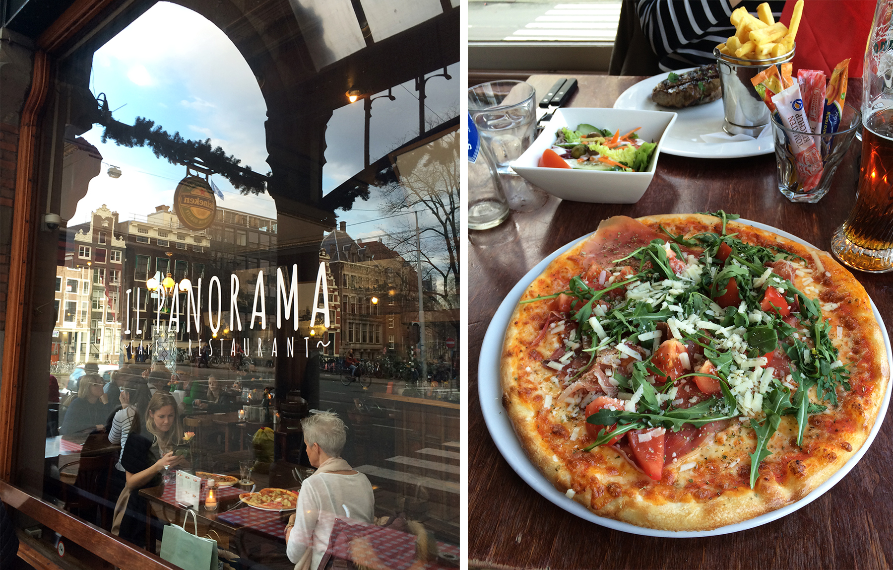 After visiting the Anne Frank House we were looking for a place to eat that was close and would get us in fast.  We found Il Panorama on the corner of Raadhuisstraat and the Herengracht canal (east of the Anne Frank House and Westerkerk).  It’s the type of place you want to have in your back pocket if you are with a group of people who all want something different as its menu offers a little bit of everything, from pasta and pizza to burgers and steaks.  The service was ok and the food was basic yet reasonably priced.  And despite our lackluster dining experience, we did enjoy our upstairs window table, which offered a great view overlooking the Jordaan neighborhood below.