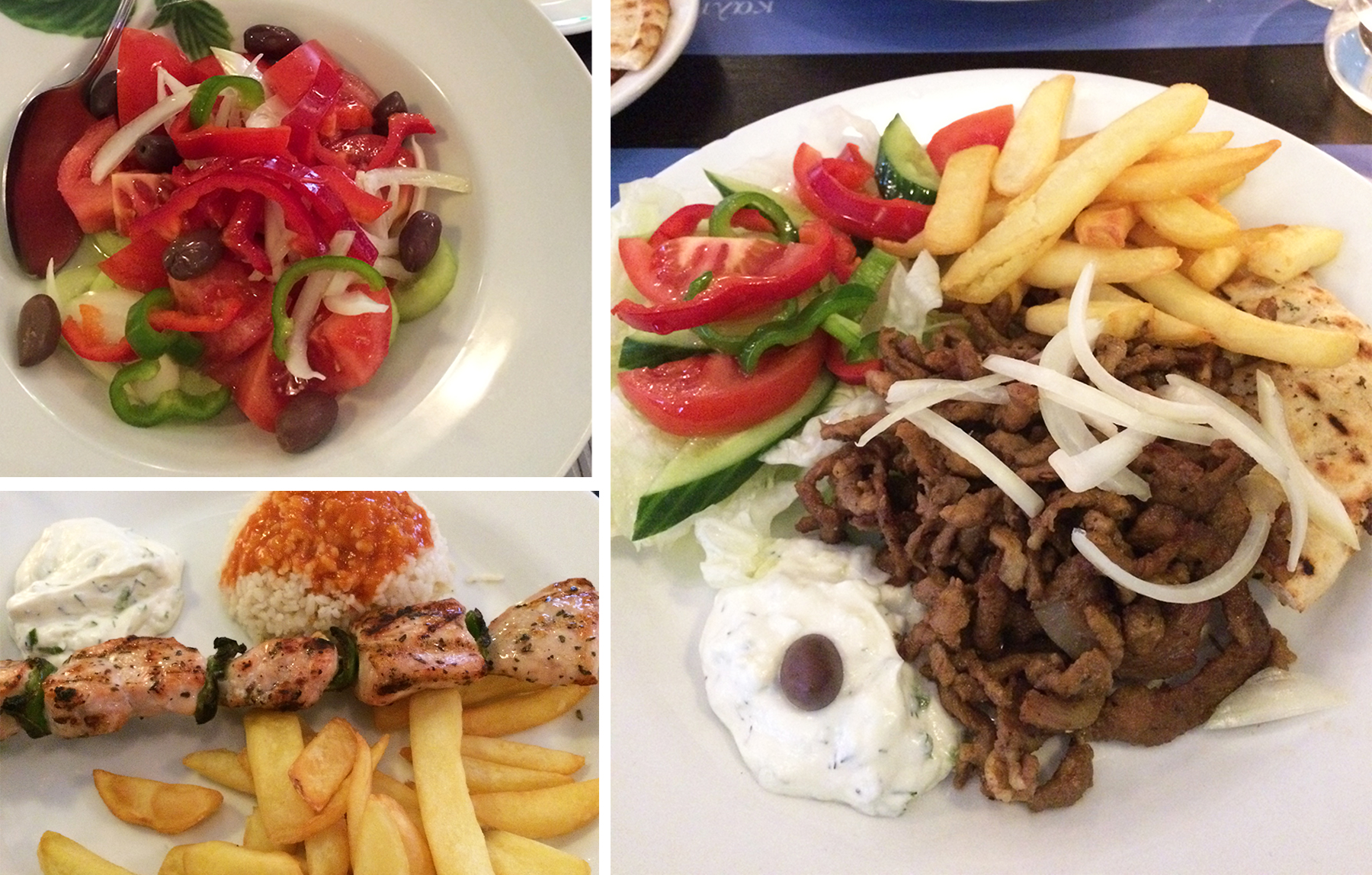 Following the routine we established a few months prior in Greece, we started our meal with an ouzo before ordering a traditional Greek salad and pita bread, chicken souvlaki that was served with fries, rice and tzatziki sauce and a pork gyro that was served deconstructed alongside its pita bread, toppings, a small salad and tzatziki.  We were surprised by the hearty portion sizes and felt like we had ordered almost too much food, which left us more than satisfied and almost too full (we could have done with one less main dish and maybe another starter instead).  We appreciated the laid back, friendly service throughout our meal, and spent some time talking with our waiter afterwards.  A Greek native, we told him about the islands we had visited and he left us with a tip to visit his favorite island Naxos next time.  :)