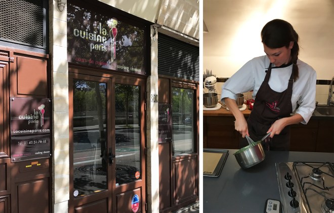 Enter La Cuisine Paris, which offers a variety of English-language cooking classes and food tours with a convenient location just steps from Notre Dame. We chose the Intensive Technical 3-hour macaron class, which would cover 2 different meringue methods and 4 different fillings – a good variety of skills to (hopefully) add to our repertoire. What I also liked about La Cuisine Paris is that their classes are taught in kitchens outfitted with the same equipment that most people have in their home kitchens (standard ovens, Kitchen Aid mixers and bowls, spoons, thermometers, etc. from IKEA vs. the professional equivalent) so that it’s possible to achieve the same results at home. Already it feels like we’re being set up for success.