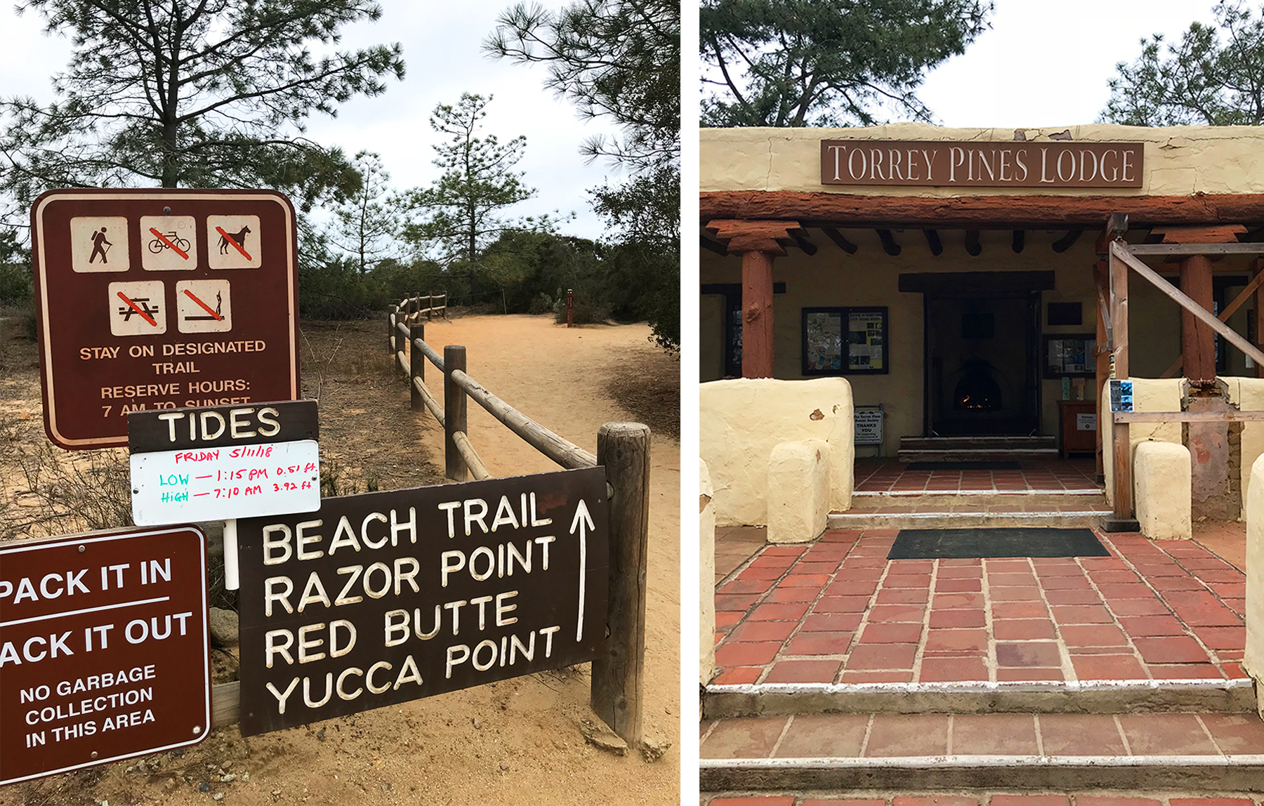 Torrey Pines State Natural Reserve is located about 16 miles north of Downtown San Diego off Interstate 5 between La Jolla and Del Mar. In less than a half hour after leaving our hotel we had arrived at the South Beach entrance, paid the attendant the daily fee (which fluctuates based on the day of the week and season) and continued to the parking lot closest to the visitor center. Several of the trails start here where you’ll also find restroom facilities and a ranger station offering helpful information and trail maps.