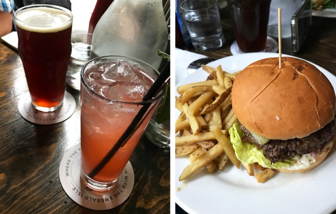 This family-run brewpub in the heart of the Gaslamp Quarter just one block north of Petco Park.  Set in a turn-of-the-century historic house, Half Door Brewing feels like a welcoming front porch for pre- or post-baseball game gatherings.  Inside is just as inviting, with cozy tables filling all available nooks and crannies.  Its menu is touted as “inventive comfort food” designed to complement house beers that are brewed on-site.  We started with the Roark Red Ale before moving on to the Seventh Heaven from the craft cocktail list.  Our food arrived shortly after, which included a poached pear salad, steak and gorgonzola flatbread and the HDBC Burger that’s topped with Irish white cheddar, lettuce, roasted red tomato, pickled red onions and truffle aioli. The flatbread was smothered in almost too much cheese and the truffle aioli was used a little too liberally on the burger, but the ambiance alone makes this a great place for drinks whether you’re going to a game or not.