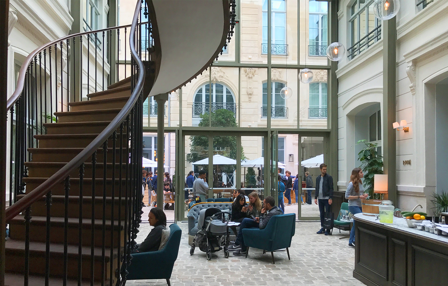 For something on the Right Bank, I’ve also stayed at The Hoxton in the 2nd arrondissement within the first week of its grand opening in Paris. My first introduction to The Hox (as it’s affectionately called) was in Amsterdam the previous year, and its French counterpart boasts the same hip vibe with acute attention to location and history in its design and décor. Throughout you’ll find plush velvet chairs, modern light fixtures and not one but two restored spiral staircases, along with a brasserie-style restaurant, old-fashioned speakeasy bar and a gorgeous lobby that spills out onto two adjacent courtyards, which are the perfect place to relax with a coffee or cocktail.