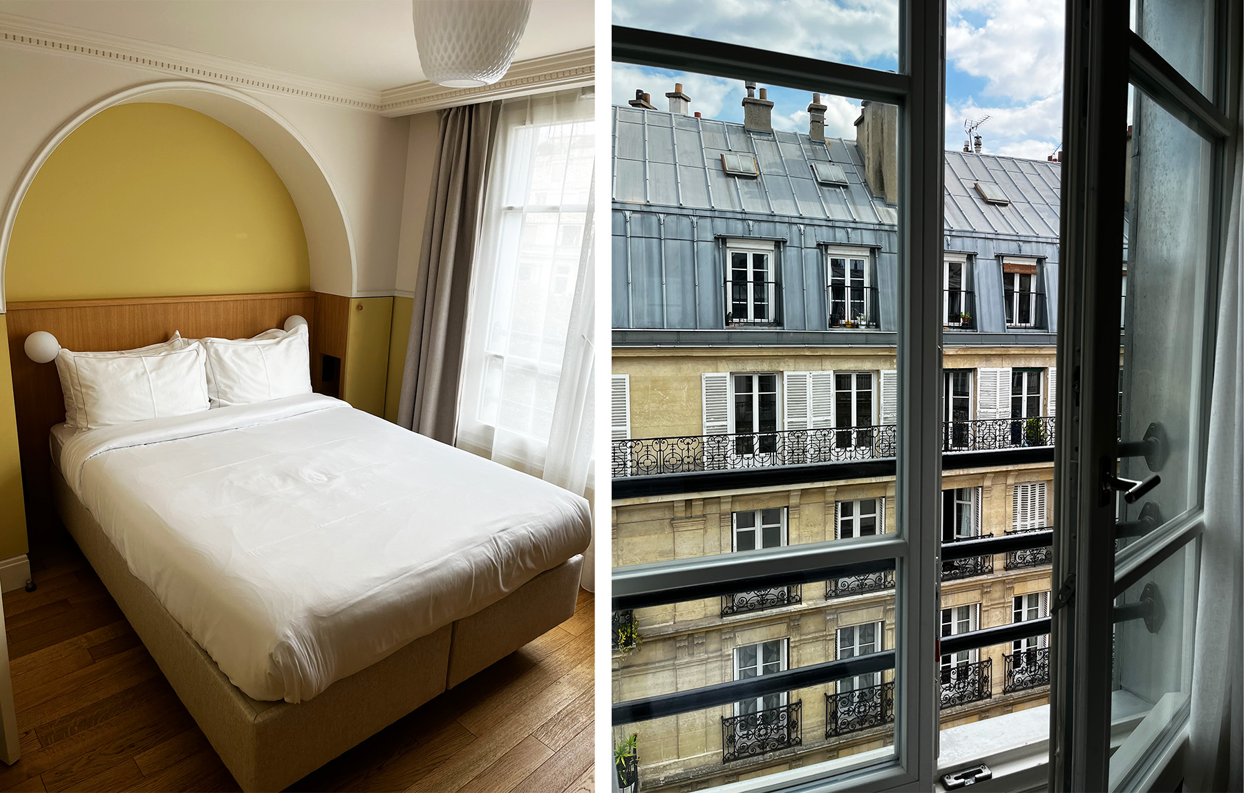 The rooms at the Hotel Oratio are on the small-ish side, which is a minor tradeoff given its near-perfect location. I especially love how the windows in the rooms open up to reveal the surrounding streets and rooftops (c’est la vie). I’ve stayed here multiple times and have always found the staff to be extremely friendly and accommodating with directions, restaurant reservations, etc. Breakfast is available for an additional cost and includes a hearty assortment of eggs, meats, cheeses, yogurts, cereals, breads and pastries with made-to-order coffee, juice and milk (it’s a good value if already included in your rate).