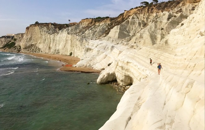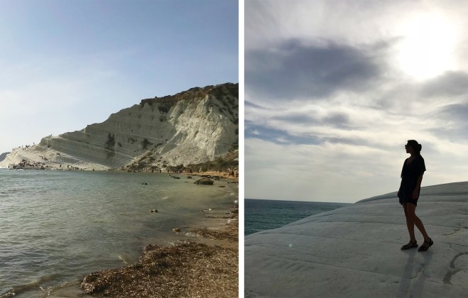 Scala dei Turchi is only 15 minutes west of the Valley of the Temples by car via SS115 and SP68 (keep an eye out for blue parking signs for various lots along the way). After you arrive expect a set of steep wooden stairs down to the beach, then continue across a shallow bay (good water shoes recommended!) to the base of the cliffs. You can escape some of the crowds by walking a little further out along the face of the cliff, which will eventually lead you to another beach area.
