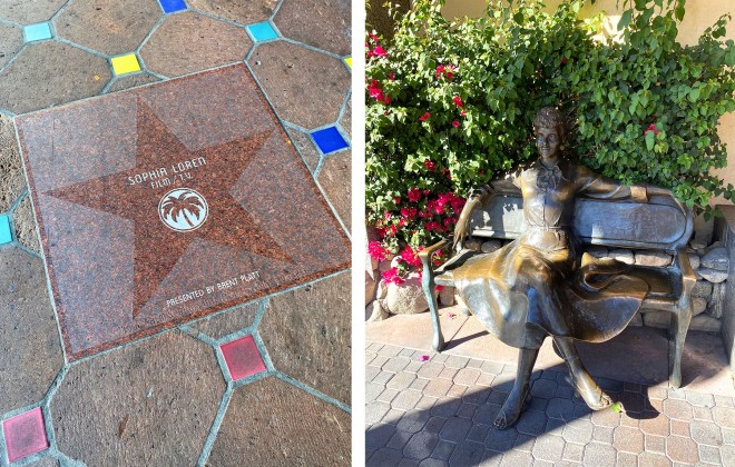 For a fun introduction to Palm Springs head to Palm Canyon Drive in the heart of downtown where you’ll find tons of al fresco dining, boutique shopping and hints of the city’s Hollywood history. Look down and follow the Walk of Stars along the sidewalk (fittingly adorned with a golden palm tree) honoring actors, musicians, architects, presidents and other notable figures with ties to Palm Springs. You’ll also find statues like that of entertainer and former mayor Sony Bono and actress Lucille Ball who once resided in the city, a colorful mural paying homage to Marilyn Monroe and other places that famous faces frequented decades ago that continue to operate today. And if you can’t get enough, many companies offer themed tours to celebrity neighborhoods and hang out spots around the Palm Springs area.