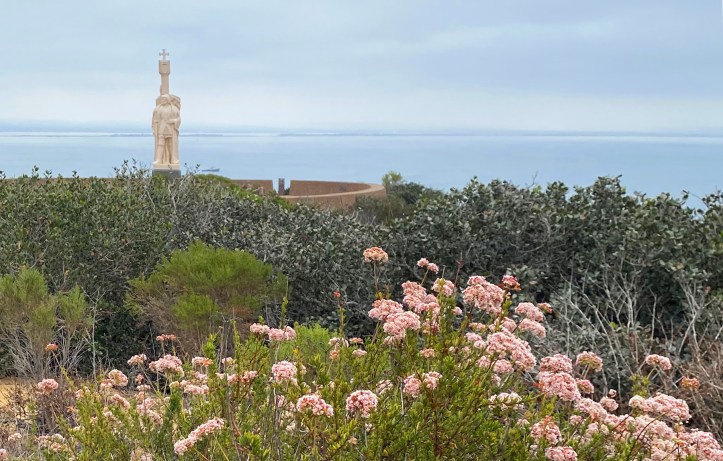Located at the southern tip of Point Loma, the Cabrillo National Monument commemorates the 1542 landing of Spanish explorer Juan Rodríguez Cabrillo, who is credited as being the first European to set foot on the west coast of the United States. He set sail from Mexico to map the coast to the north, open trade and discover a “mythical passage” among other explorer-type things. Visiting the monument today requires much less effort, as it’s an easy 20 to 30-minute drive from most places in and around San Diego. The gentile 2-lane Catalina Boulevard winds through a neighborhood before transitioning to Cabrillo Memorial Drive where it passes through the countless rows of gleaming white headstones of the Fort Rosecrans National Cemetery on either side as you approach the entrance fee station. Bear right to reach the Point Loma Tide Pools (more on that later) or bear left to reach the parking lot for the Visitor Center.