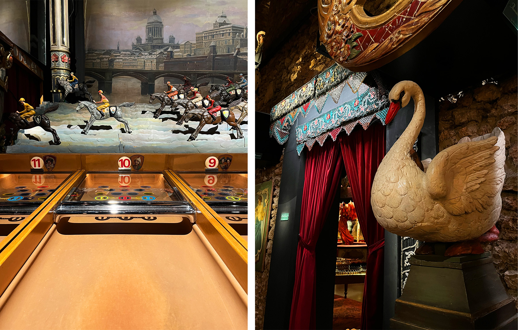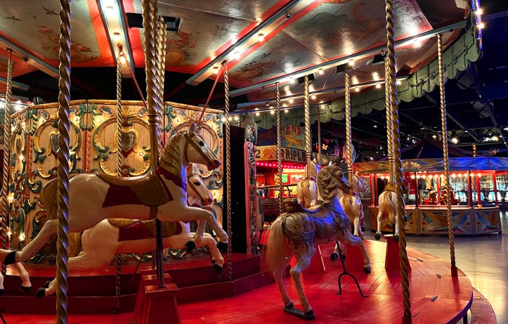 There’s no shortage of ways to escape these days – books, movies, tv shows, the endless rabbit hole of social media and the internet – but how often do we have the opportunity to be transported to another time and place in person?  Or on a journey of imagination as our guide described before leading us into a magical world of yesterday at the Musée des Arts Forains in Paris.