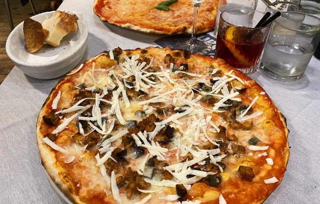 Even with San Marco’s extensive menu we couldn’t pass up one more meal of pizza on our last night in Rome. We ordered one Margherita and one La Sicula with fried eggplant, capers and grated ricotta, which were both delicious and had surprisingly different flavors despite only slight variations in toppings. The service was friendly and our meal was not super filling thanks to the thin, crispy crust that’s characteristic of Roman-style pizza. Instead of ending with desert we opted for a caffé and amaro, leaving room for one last gelato as we made our way back to our hotel.