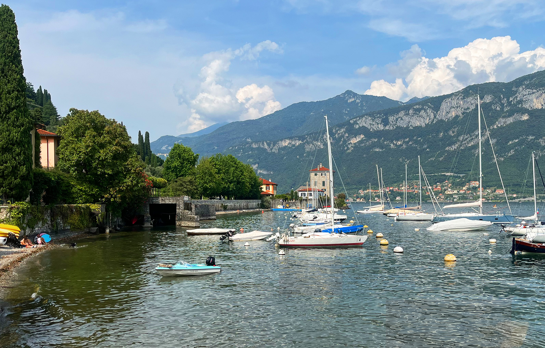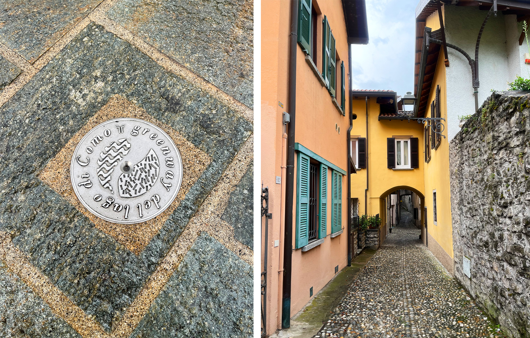 Boarding a ferry to Bellagio was a hectic process, and when we arrived the town was bustling. It felt bigger than Varenna (although not as big as I expected the famed resort town to be), with more shops and restaurants up and down its steep streets called salite, Salita Serbelloni being the most famous and most photographed. To escape the crowds, we headed to Pescallo, a small fishing village on the other side of the Bellagio promontory. More steep steps lead us to a quiet neighborhood draped in ivy and tip #4 – look for opportunities to get off the beaten path. We found the water and dipped our toes into the cool, crystal-clear lake, soaking in views along with a handful of swimmers, boats and the occasional swan crossing. If only we had known how pleasant Pescallo would be, we would have brought our bathing suits and spent more time here rather than venturing out to the Punta Spartivento observation deck at the tip of Bellagio, which left us feeling a bit underwhelmed about our visit as we made our way to the port and took a boat back to Menaggio.